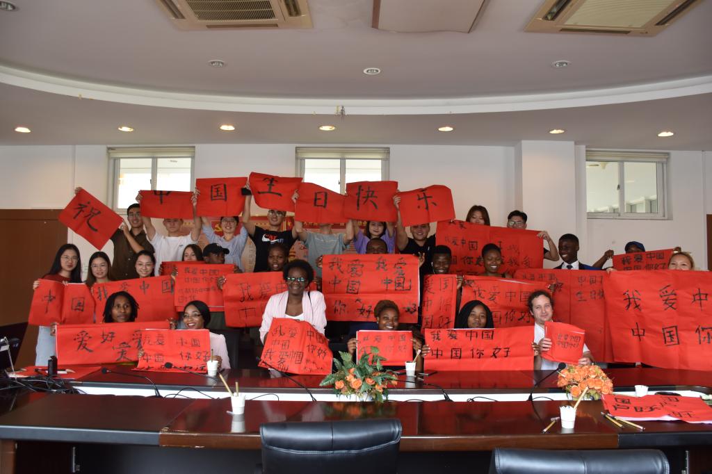 的20余名留学生一起庆祝新中国成立70周年。