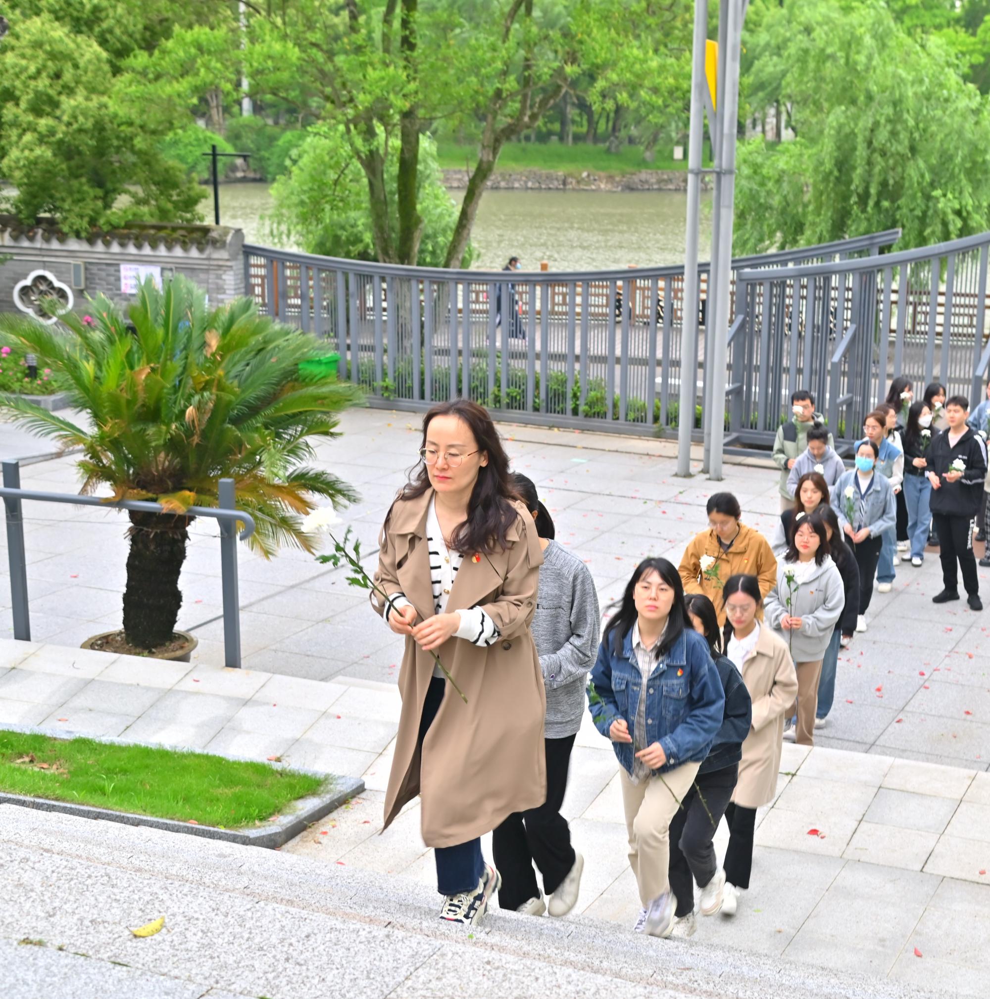 党委副书记胡佳带领40余名学生党员、辅导员和分党校预备党员培训班学员走进慈城真理园、深入南联村参观研学,并前往慈湖烈士陵园祭扫献花。