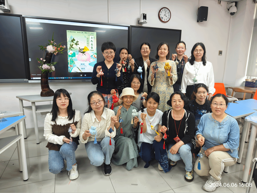 直至下午三点,此次活动圆满结束,在结束之前,老师们都拿着自己精心制作的香囊合影留念,同时她们也希望此次活动能够带大家感受端午氛围,为大家带来美好祝愿!