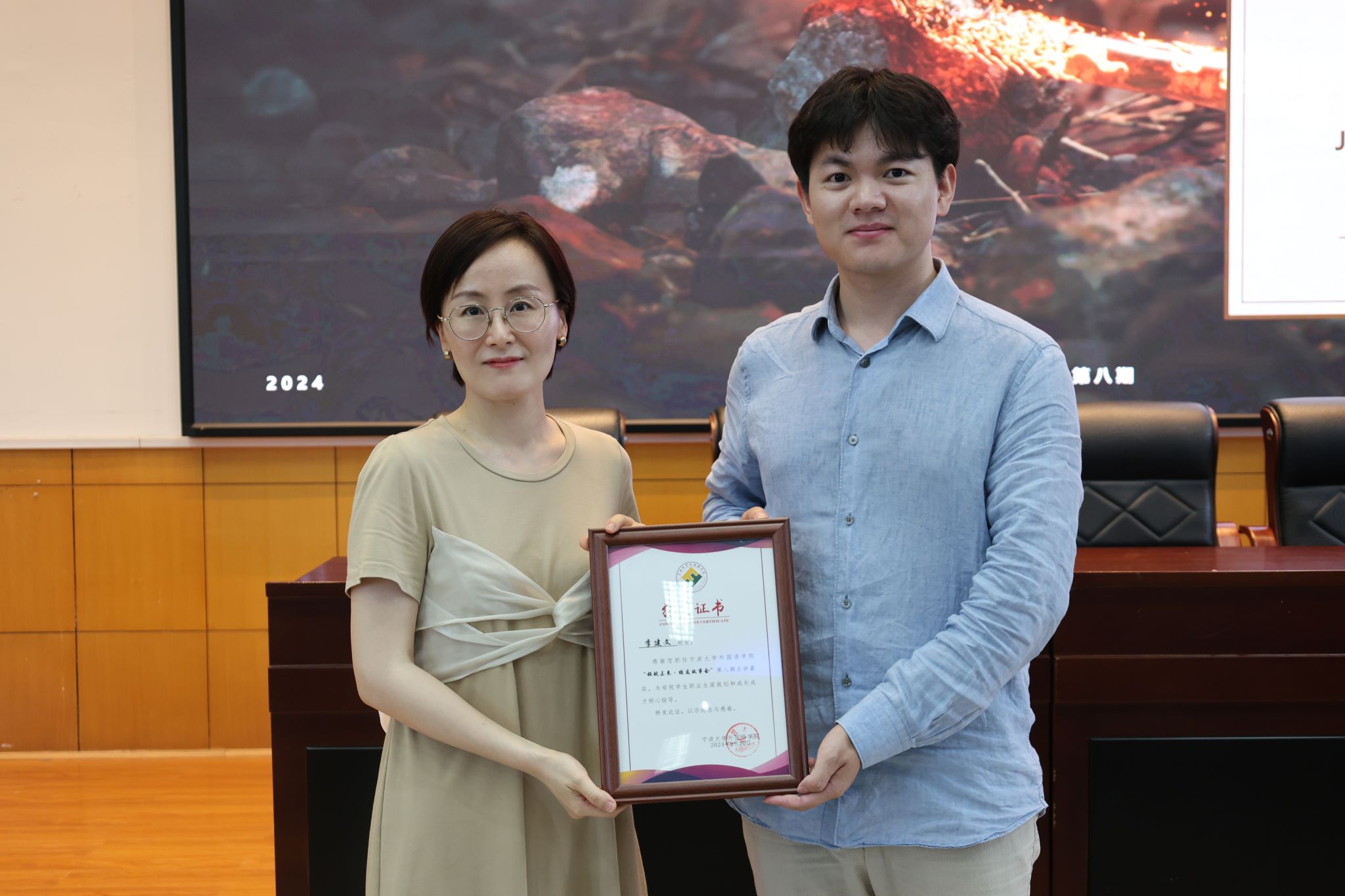 党委副书记胡佳在讲座结束后为李建文颁发纪念证书,感谢李建文校友对母校学生职业生涯规划和专业学习做出的热心建议。
