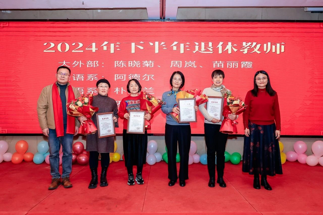 为大外部陈晓菊、周岚、苗丽霞,英语系阿德尔,日语系朴东兰,行政办罗晖等老师举办荣休仪式,特聘院长屠国元、黄色视频