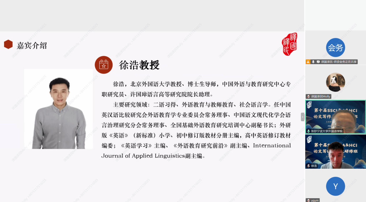 北京外国语大学博士生导师、中国外语与教育研究中心研究员徐浩教授,系统阐述了“质化研究中AI辅助设计与结果呈现”的最新进展;上海外国语大学语料研究院院长雷蕾教授,作为多本SSCI期刊编委,以其丰富的审稿经验,详细讲解了“AI辅助论文修改与审稿意见回应”的实用技巧。