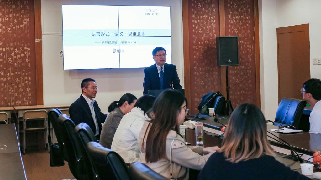 张教授从认知语言学基础知识开始引入主题,讲座分五个部分。首先,语言形式:从客观世界到语言世界。通过大量例句,阐述了从现实到语言的过程需要有认知的能动作用。其次,由现实到概念,从语言学角度看,这一过程被称作概念化。并且概念化存在着主动性和动态性,通过四个角度的实例来印证该观点。接下来,张教授又对“语言形式与语义”,“汉语、日语中不同的识解方式”两点进行了深入浅出的讲解。他引用大量的文本例句,比如《红楼梦》中的相关人物,以及一些网络歌词和现实生活中的广告词等,将原本抽象难解的理论通过实例形象、生动地展现在大家面前,内容风趣、幽默,引人入胜。结尾部分,张教授讲述了“生活世界中的语言教学与语言应用”,进而说明语言本身的无形力量及意义,在不同的对象和环境中所起到的作用。