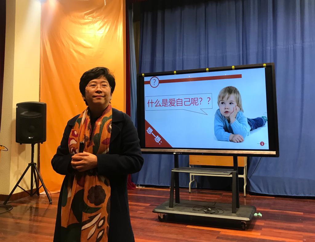 沙龙伊始,卢美芬阐释了自己阅读《非暴力沟通》一书的初衷,并抛出“什么是爱自己”的问题。随后,卢美芬通过引用各类书籍中的典例和诸多专业学理观点,依次探讨了“什么是爱自己”“为什么爱自己”“怎么爱自己”三个问题,为在场师生揭示“爱自己”的本质,并提出“一切现实以修身为本,改变世界从改变自己开始”的观点。在沙龙中,卢美芬还反复强调人际关系是幸福的决定性因素,因此要学会管控自己的情绪,了解他人需要,做到感同身受。最后,卢美芬用“不将就,就是爱自己”作为讲演的结语。