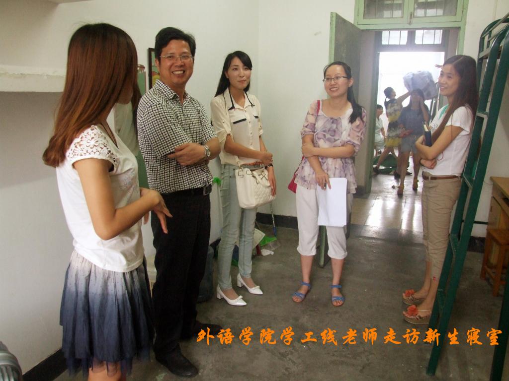 9月10日下午,外语学院党委副书记辅导员一行走访2014级新生寝室,看望来校报到新生。
