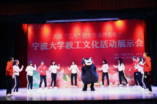分工会的十二位老师表演,老师们充满活力的表演加上可爱的熊本熊也使得现场氛围更加热络。
