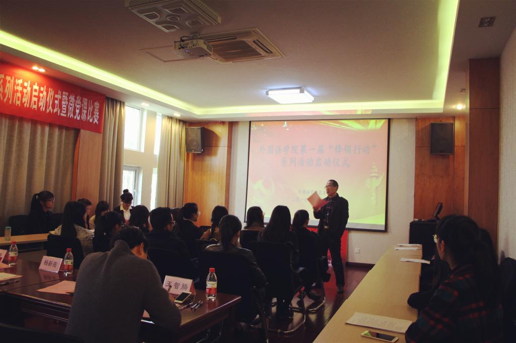 第一届“锋领行动”系列活动启动仪式暨微党课比赛在外语楼附楼107举行。学院党委委员、师生党支部书记和党员、入党积极分子代表参加。