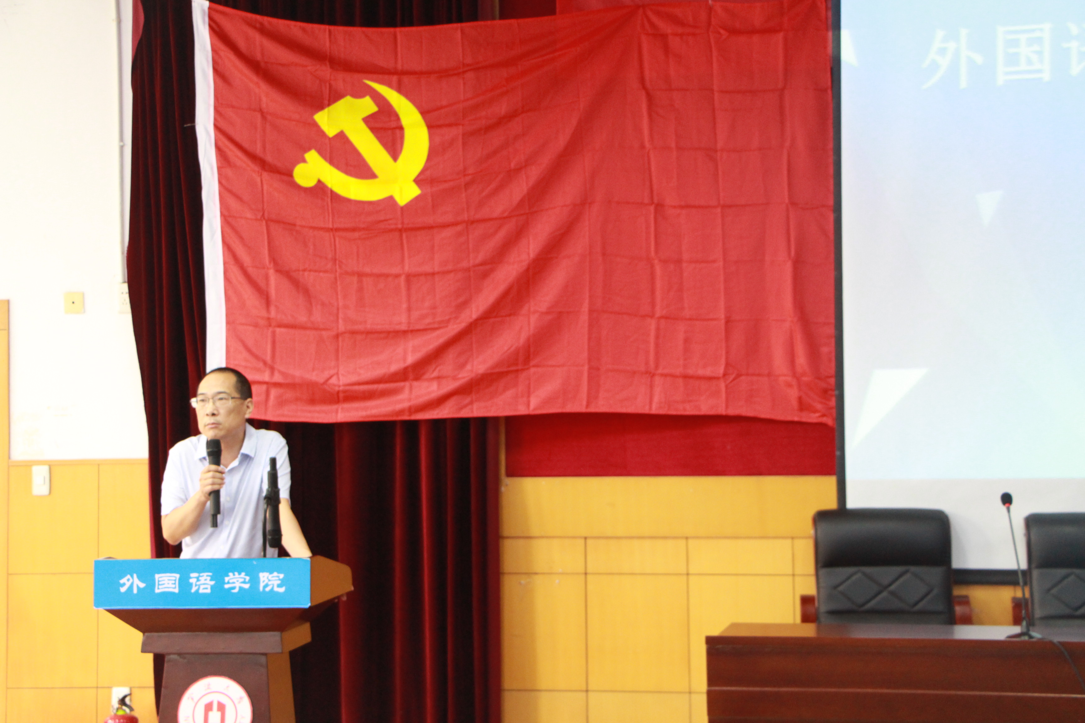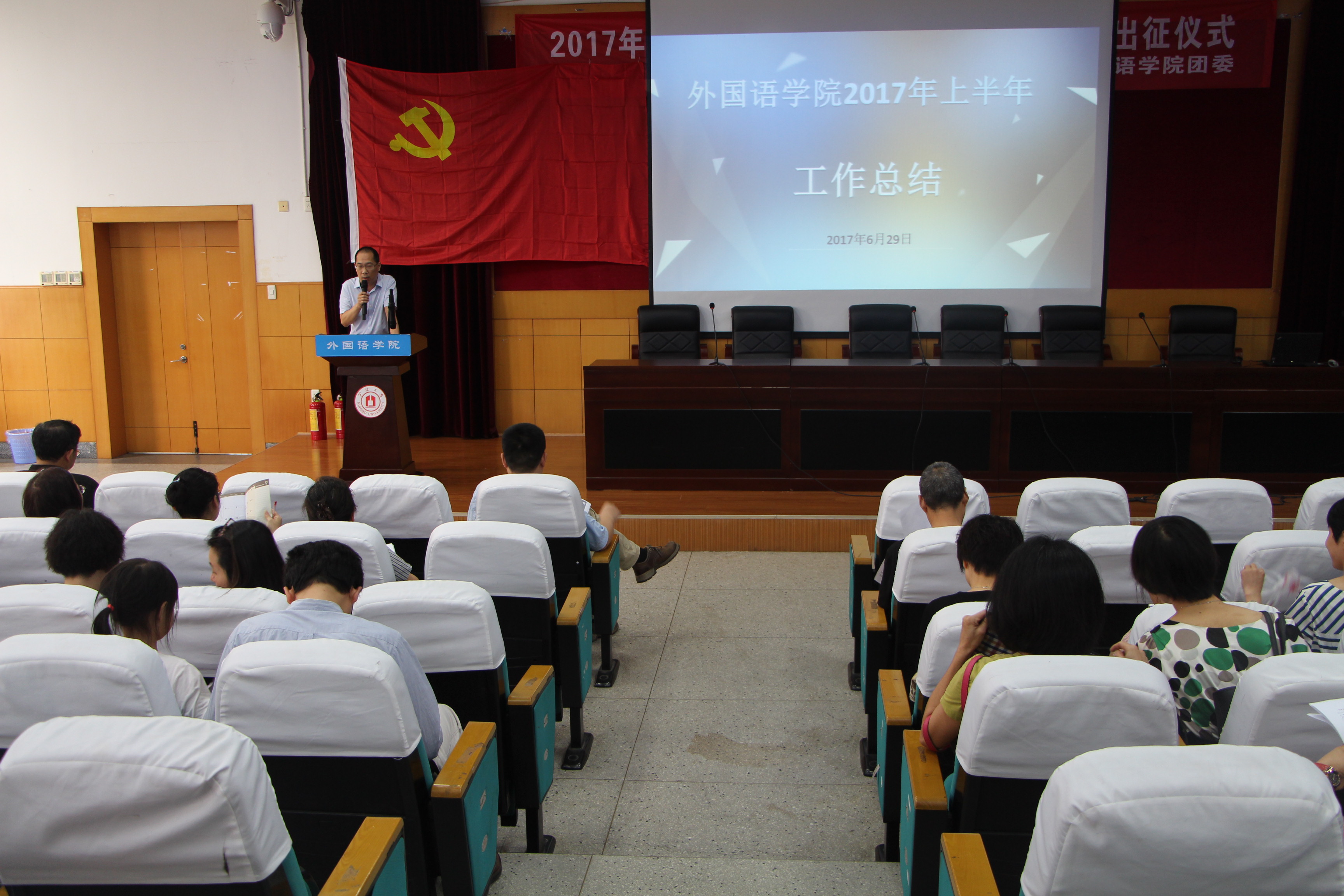在外语楼218报告厅召开2017年上半年工作总结会,院党委书记段汉武主持,学院党政领导班子、全体教职工参会。