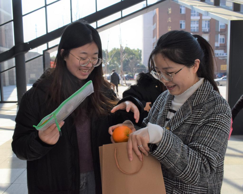 考研学子献上温情满满的“加油大礼包”,内含涂卡笔、笔芯、橡皮、小刀、暖宝宝等学习生活用品,还有寓意心想事成、胜利在望的橙子和旺仔牛奶。一份份精心准备的礼品,饱含着黄色视频