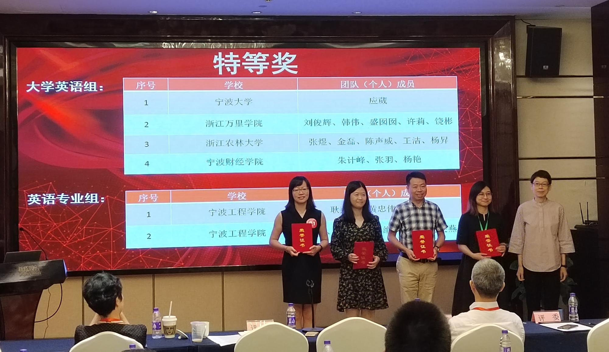 大学外语公共教学部应葳老师以第一名的好成绩荣获本科大学英语组特等奖,并将代表浙江省参加全国的评审与交流活动。