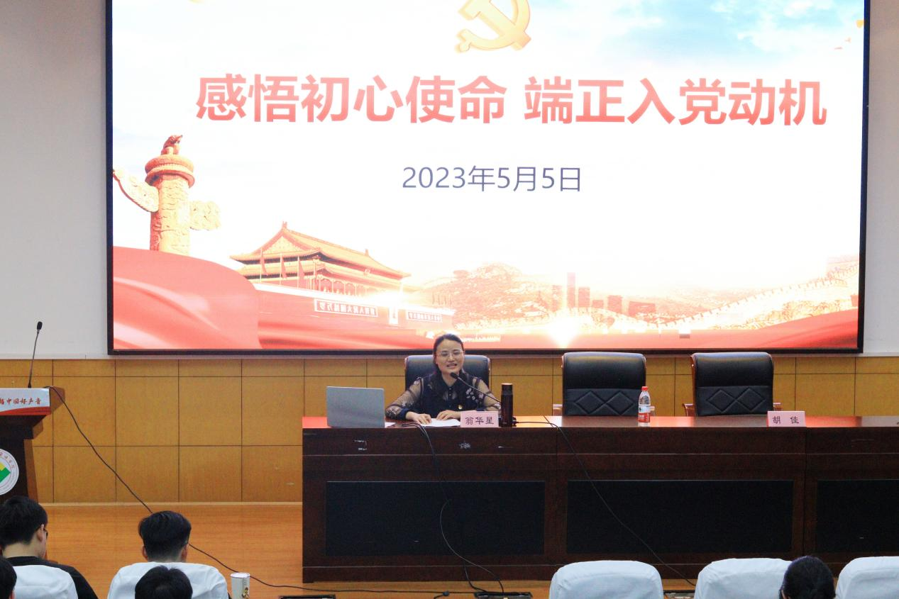 党委书记翁华星老师以“感悟初心使命,端正入党动机”为题带来第一讲党课,带领大家深入学习党的指导思想,阐述党的三大历史贡献,并对党校学员提出几点期望:一、坚定共产主义远大理想;二、加强政治理论学习,及时有效地学习领会党的最新方针与政策;三、从身边点滴做起,努力学习文化知识,积极参与各项活动,坚持模范带头,争取早日入党。