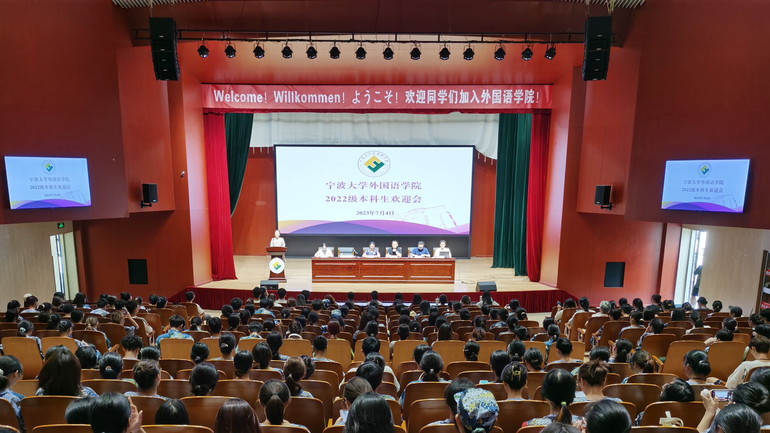 党委副书记胡佳以“送给外院2022级‘新生’的四句话”为题,向即将进入外院学习的同学们提出四个殷切要求:要有宁大外院人应有的气质形象;要有宁大外语人应有的活力和张力;要有中国外语人应有的格局和担当;要努力锻造新时代外语人应有的素养和能力。讲话最后,她期望在座的同学要勇挑外语青年的重担,对外展现一个可信、可爱、可敬的中国形象。
