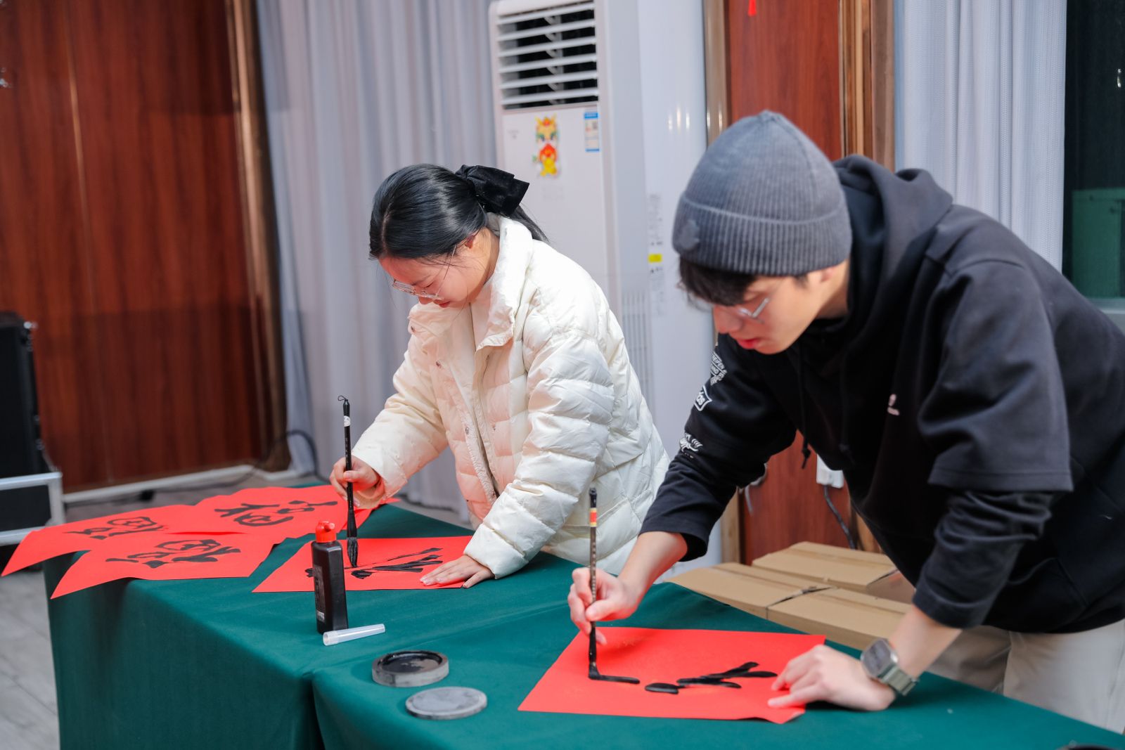 教师、各届校友带来歌舞、乐器弹唱、瑜伽表演等多种形式的表演,多名校友代表还向自己求学时的恩师敬赠谢师礼,表达了对恩师的想念、感激与真诚的祝福。退休教师杨成虎更为活动作赋,总结2023,愿景2024。研究生施周安健、本科生沈昱辰受邀来到现场挥毫泼墨,书写了百余张福字,吸引了老师们围观欣赏,黄色视频