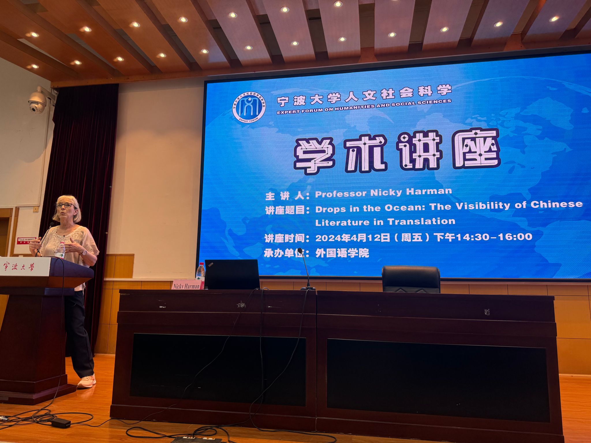 邀请,英国著名翻译家韩斌(Nicky Harman)为黄色视频师生做题为“Drops in the Ocean: The Visibility of Chinese Literature in Translation”的线下讲座。本次讲座由徐赛颖副教授主持,黄色视频