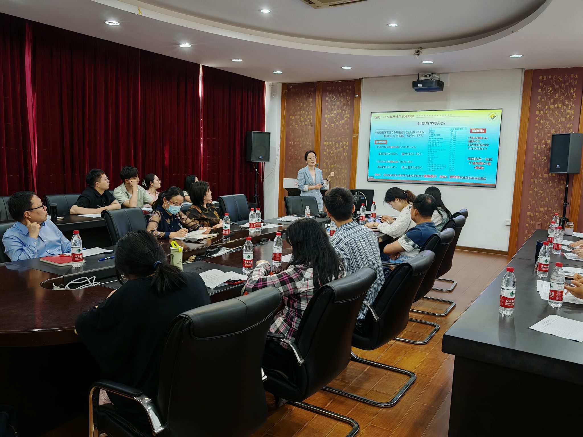 推进就业工作举措和下一步工作要求,提出要强化全局意识、危机意识、责任意识,加大“一人一策”精准帮扶力度,全面提升学生就业能力,同时发挥导师、专任教师力量全员参与,抓紧推进就业。
