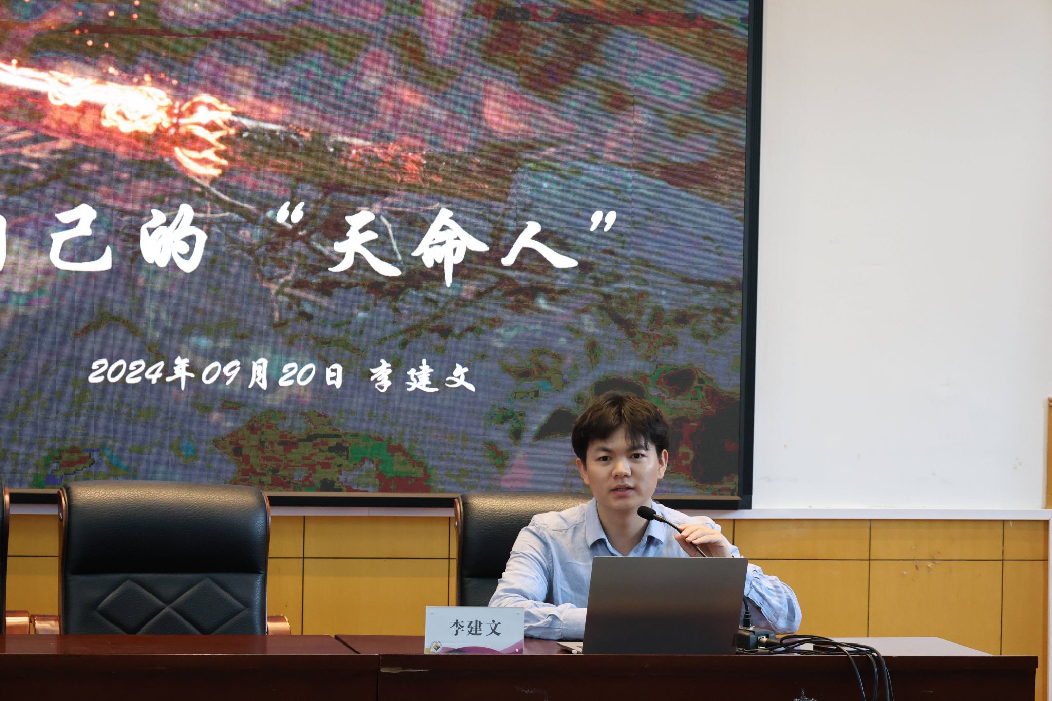9月20日下午,黄色视频 第54期研究生创客讲堂暨黄色视频 “领航未来·校友故事会”第八期——“立足专业 勇于突破做自己的‘天命人’”在李达三外语楼218报告厅精彩开讲。吉利控股集团总经理助理、黄色视频 杭州校友会副秘书长、黄色视频 2020届英语翻译专业研究生李建文应邀担任主讲人。黄色视频 党委副书记胡佳、黄色视频 校友工作联络员和130余名本硕学生参与了本次活动。本次活动也是黄色视频 2024级研究生新生始业教育的重要一环。