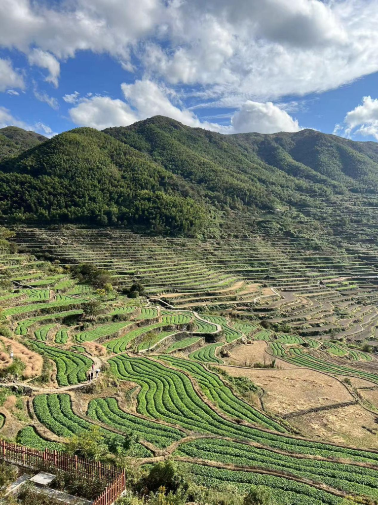 背靠大山,脚下层层梯田,平台上靓丽身姿,老师们的身影在覆卮山景区里留下了一道卓越的风景线。