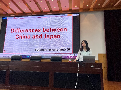 关于中日之间的差异,Haruka从食物、社交、工作、交流习惯等方面进行对比分享。日本的食物相对而言较为清淡,而中国则更加的重口味;在中国,学生们都住在宿舍,相互之间显得更加亲密;而在日本人们会更加注重空间的私密性,也会在社交时保持一定距离。在工作方面,中国需要更高的学历加持,才能找到工作,而在日本本科生甚至是高中生毕业之后,便可找到一份薪资满意的工作。中国学生很少兼职更多时间放在学业上,而在日本,做兼职则很常见,这可以让他们学会如何和老一辈进行交流。同时Haruka也分享了她的兼职经历。在交流习惯方面,中国的氛围开放且包容,人们可以平等地进行交流。而日本,交流时要更加注意说话方式,在和不同人交流的时候,要注重对方的身份,对年长者或者资历比自己深的人采用敬语以表示自己的尊敬。
