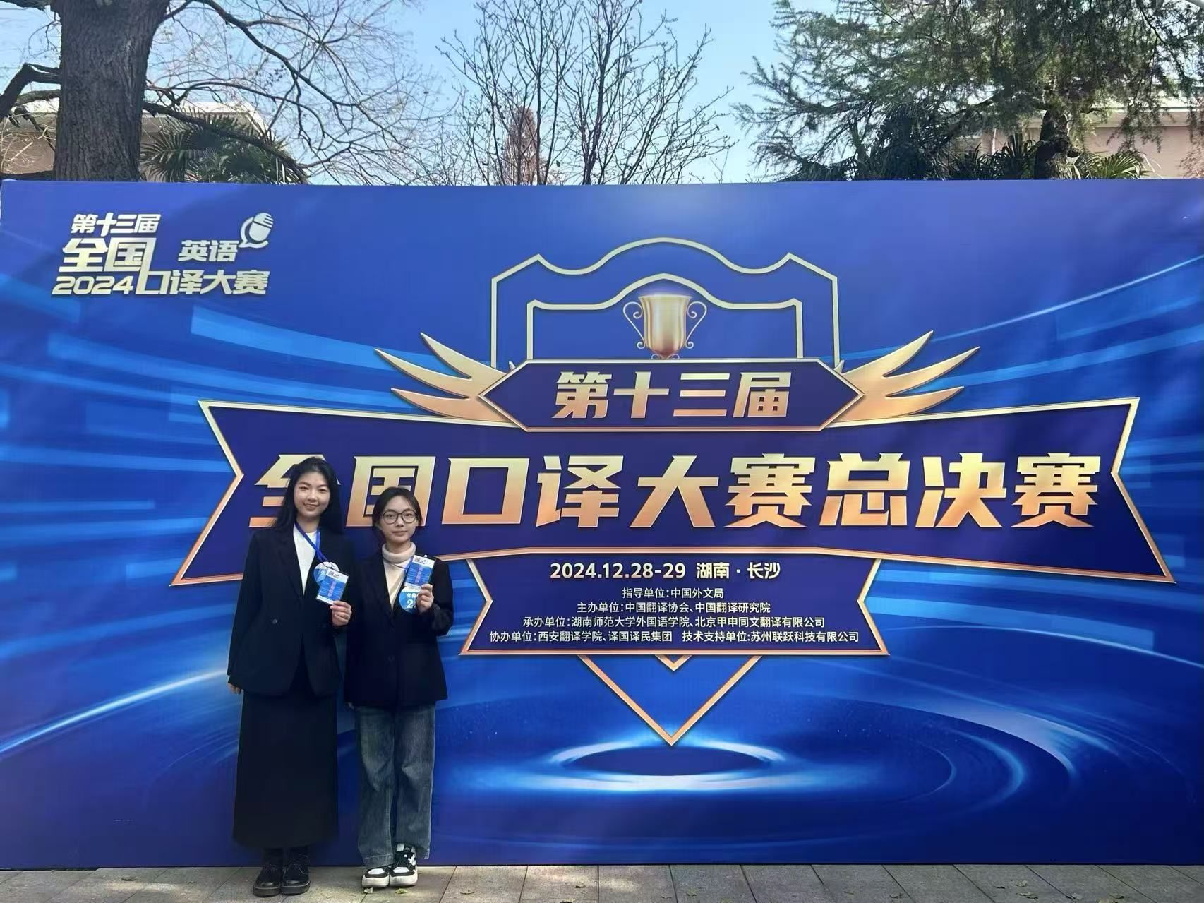 外院学子凭借扎实的专业技能,在竞争激烈的高规格赛事中脱颖而出,实属不易。其中,李昕怡、马杨倩两位同学过关斩将,进入第十三届全国口译大赛全国总决赛,最终斩获交传组全国一等奖。