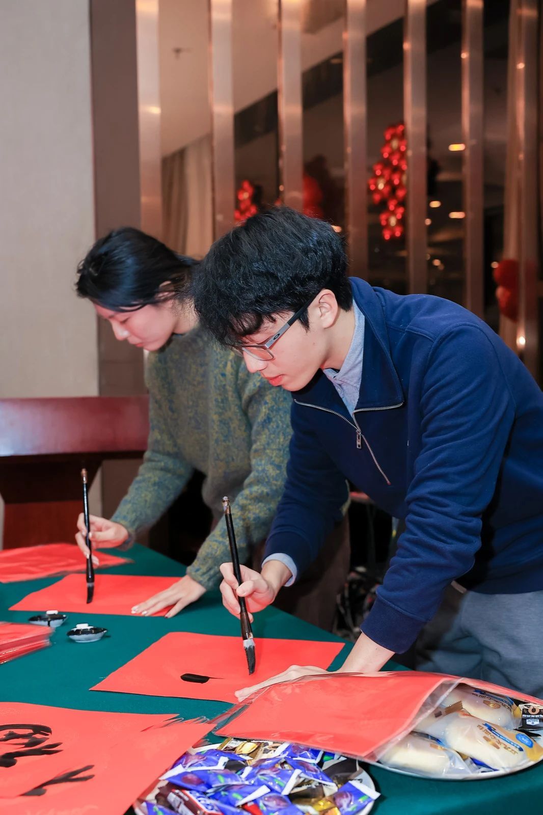 师生、校友带来歌舞、小提琴演奏、诗歌朗诵等多种形式的表演。全体党政班子成员首次携手登台,用他们饱含深情与力量的嗓音,共同演绎了歌曲《我们都是追梦人》。研究生施周安健与本科生朱奕恬受邀来到现场挥毫泼墨,书写了百余张福字,吸引了老师们围观欣赏,黄色视频