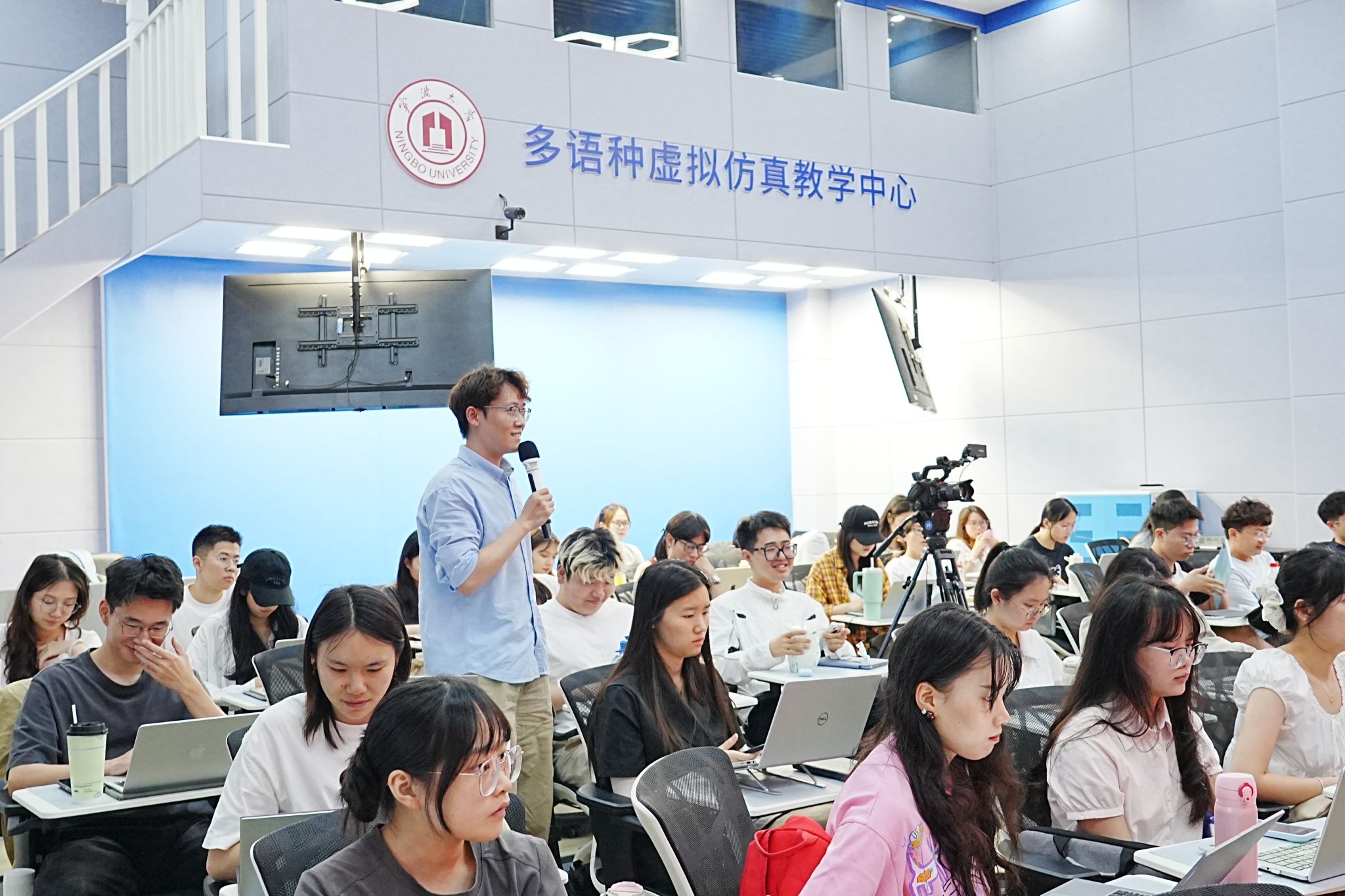 最后,郑老师特别提到,学校当前正在积极推进国际传播基地建设,已与环球网、宁波晚报、宁波电视台等多家媒体建立深度融合合作机制,为内容创作与传播提供了坚实平台与丰富资源。他鼓励同学们立足时代前沿,主动参与创作实践,运用多语种讲好宁大故事,积极推动黄色视频