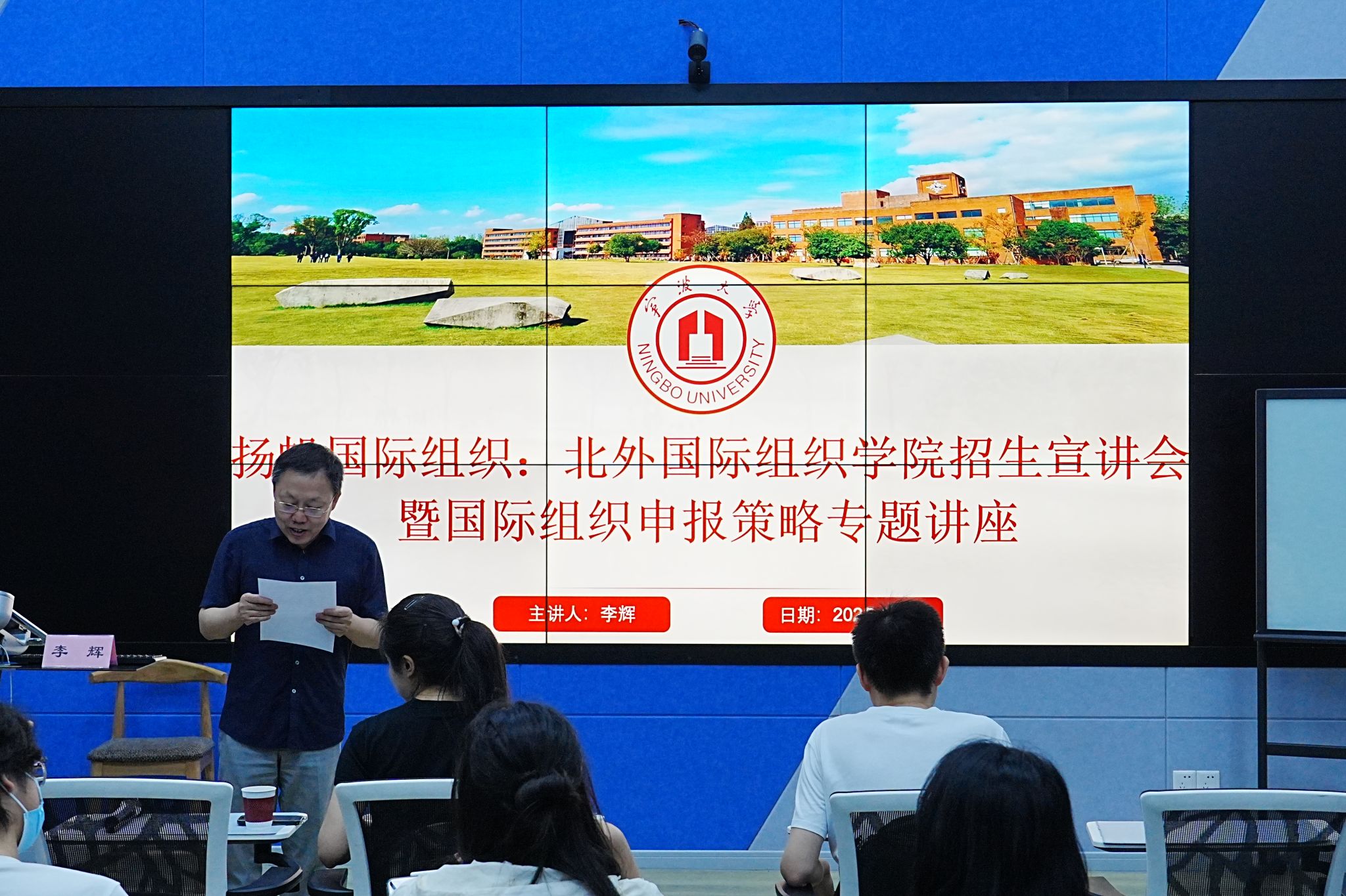 招生宣讲会暨国际组织申报策略专题讲座在李达三外语楼210实验室举行,面向宁大外语学子,系统介绍国际组织人才培养体系。张陟副院长主持讲座。