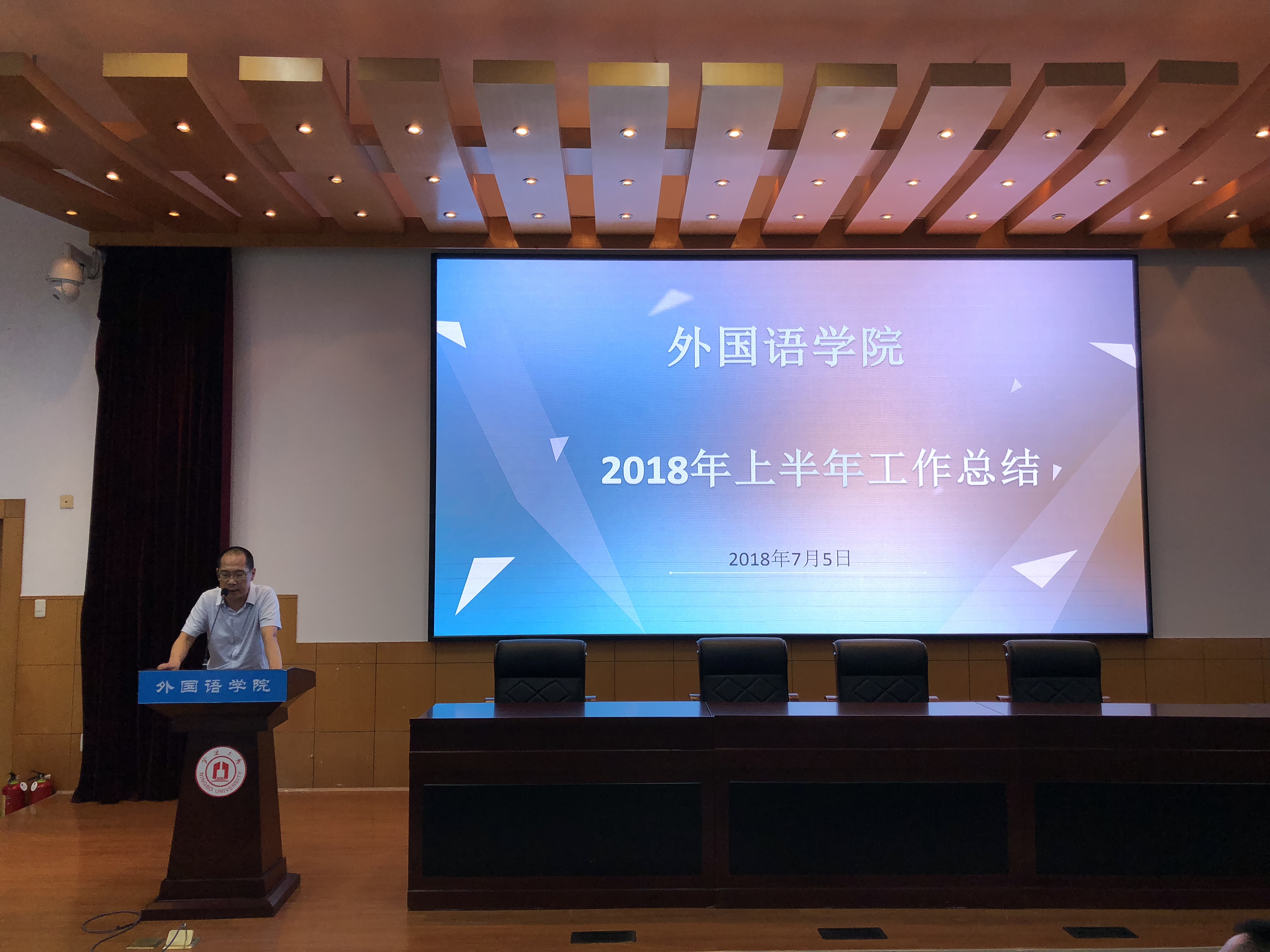 获批国家社科基金项目1项,教育部项目2项。外国语言文学学科全国排名21位(21/223),百分比为9.4%,继续稳居浙江省省属高校第1位。翻译硕士学位点全国排名17位(17/205),百分比为8.29%。工作总结后,院长代表院党政班子对全院教职工2018年上半年的辛勤工作表示感谢,也希望教职工在暑假期间劳逸结合,锻炼好身体,同时利用假期充实自己。
