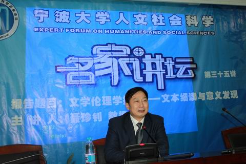 聂珍钊教授的讲座题目为“文学伦理学批评:文本细读与意义发现”。讲座从文学伦理学批评的概念入手,对莎士比亚的经典悲剧《哈姆雷特》的伦理环境、伦理禁忌、伦理身份、伦理错位及伦理选择等问题进行了剖析。聂教授指出,文学伦理学批评旨在回到历史的伦理现场,客观辩证地看待文学作品中展示的伦理关系。本着这一原则,他对哈姆雷特遭遇的伦理困境进行了独到的阐发,认为哈姆雷特的延宕乃缘于自身陷入了弑父、弑母与弑君的三重伦理困境。聂教授从自己多年的文学研究与杂志编纂的经验出发,认为文学研究的关键在于方法论的创新。文学批评应注重文本细读,注重理论与实际的紧密结合。聂教授对文学文本的细读与严密推论令在座的师生受益匪浅。