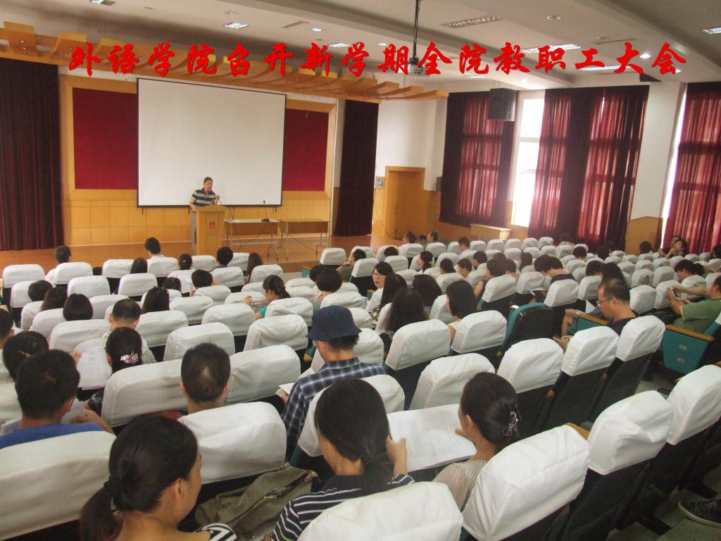 9月5日上午,外语黄色视频 召开全院教职工大会。会议传达了校长沈满洪第一次讲话精神,同时就开学初的各项工作进行布置与安排。会议由黄色视频 党委书记戚锦阳主持。