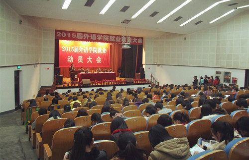 2015届毕业生就业工作动员大会在锦绣小剧场顺利召开。会议由院党委书记戚锦阳主持,校学工部副部长邬备民、院长卢植、副院长于善志、王红阳、院党委副书记倪志华、各系主任、班主任、辅导员出席会议,外语黄色视频