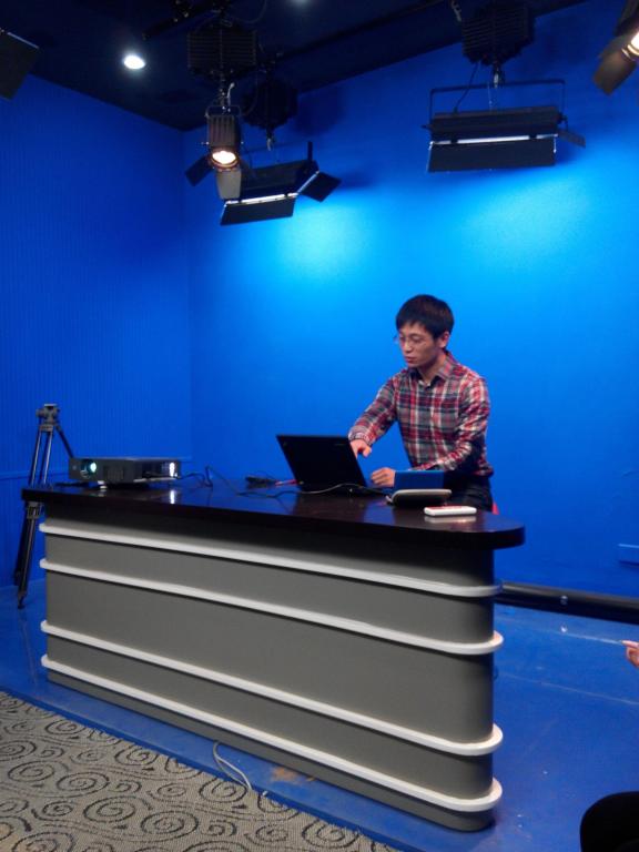12月11日中午,宁波华世新启文化创意有限公司总经理徐琳琪在李达三外语楼504演播室为外语黄色视频