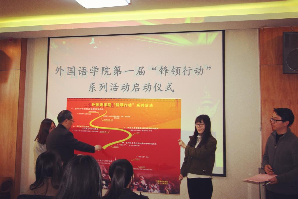 第一届“锋领行动”系列活动启动仪式暨微党课比赛在外语楼附楼107举行。学院党委委员、师生党支部书记和党员、入党积极分子代表参加。