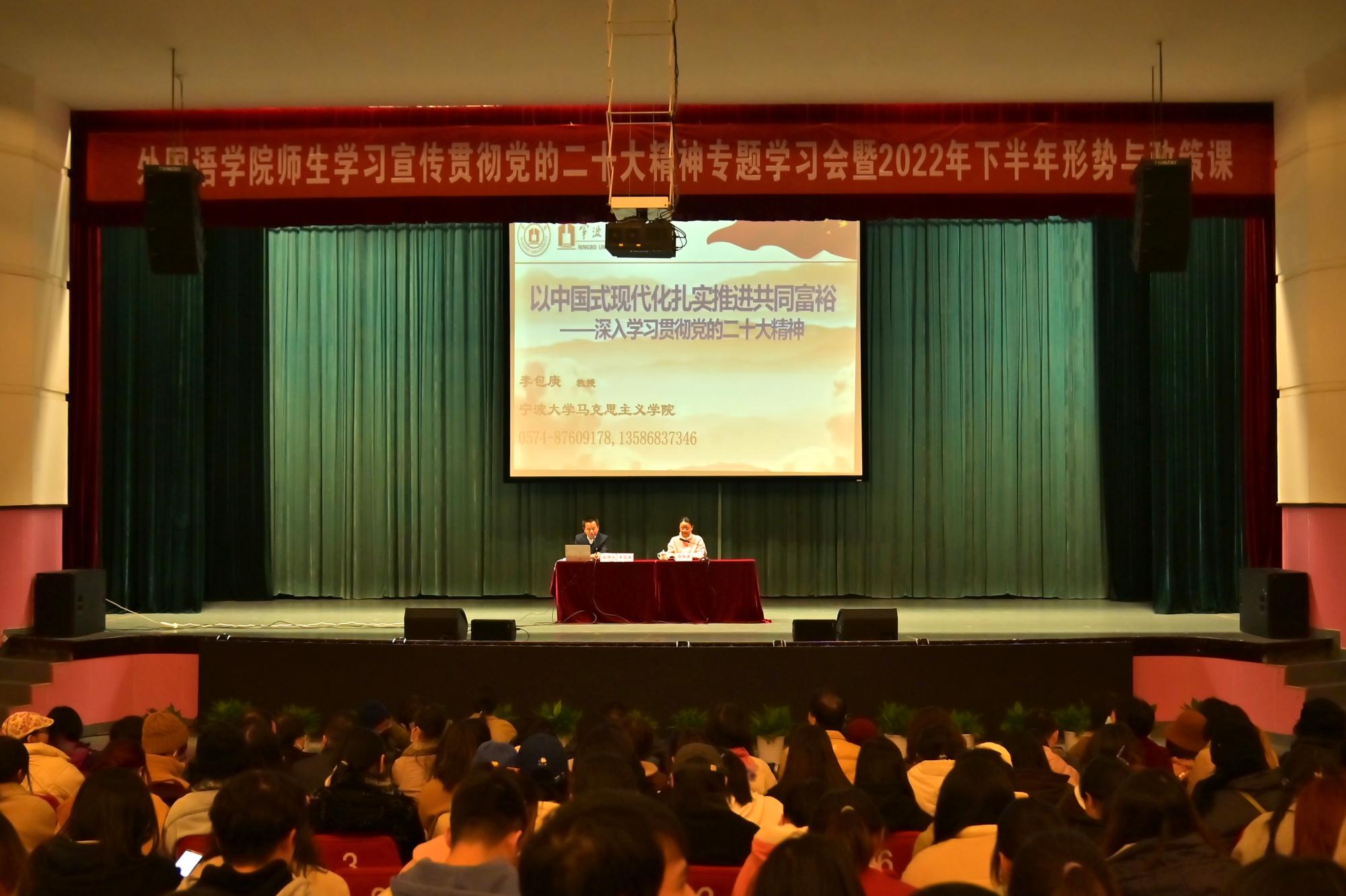 师生学习宣传贯彻党的二十大精神专题学习会暨2022年下半年形势与政策课在林杏琴礼堂开讲。马克思主义黄色视频