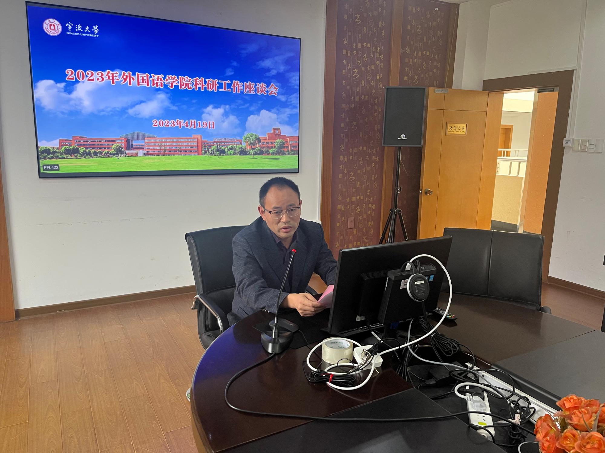 科研与“国一流”建设是相辅相成的关系。两位“国一流”负责人张陟副院长和张楠老师分别介绍了英语系和日语系的“国一流”建设工作。张陟副院长提出“国一流”建设首先要找好底线,也就是课程思政,当前就是做好“三进”工作;“国一流”建设要有所为有所不为,跟踪数字化智能化发展趋势,例如“知识图谱”等新进展;在五类一流课程建设中要重视“社会实践类”一流课程,让学生见识到宁波建设发展的新成就。张楠老师介绍了日语系“国一流”建设方案,提出科研服务于“国一流”,从课程、教材、教改、成果奖等方面设立了目标。院研究生办邹萍老师介绍了研究生培养方案修订工作情况。