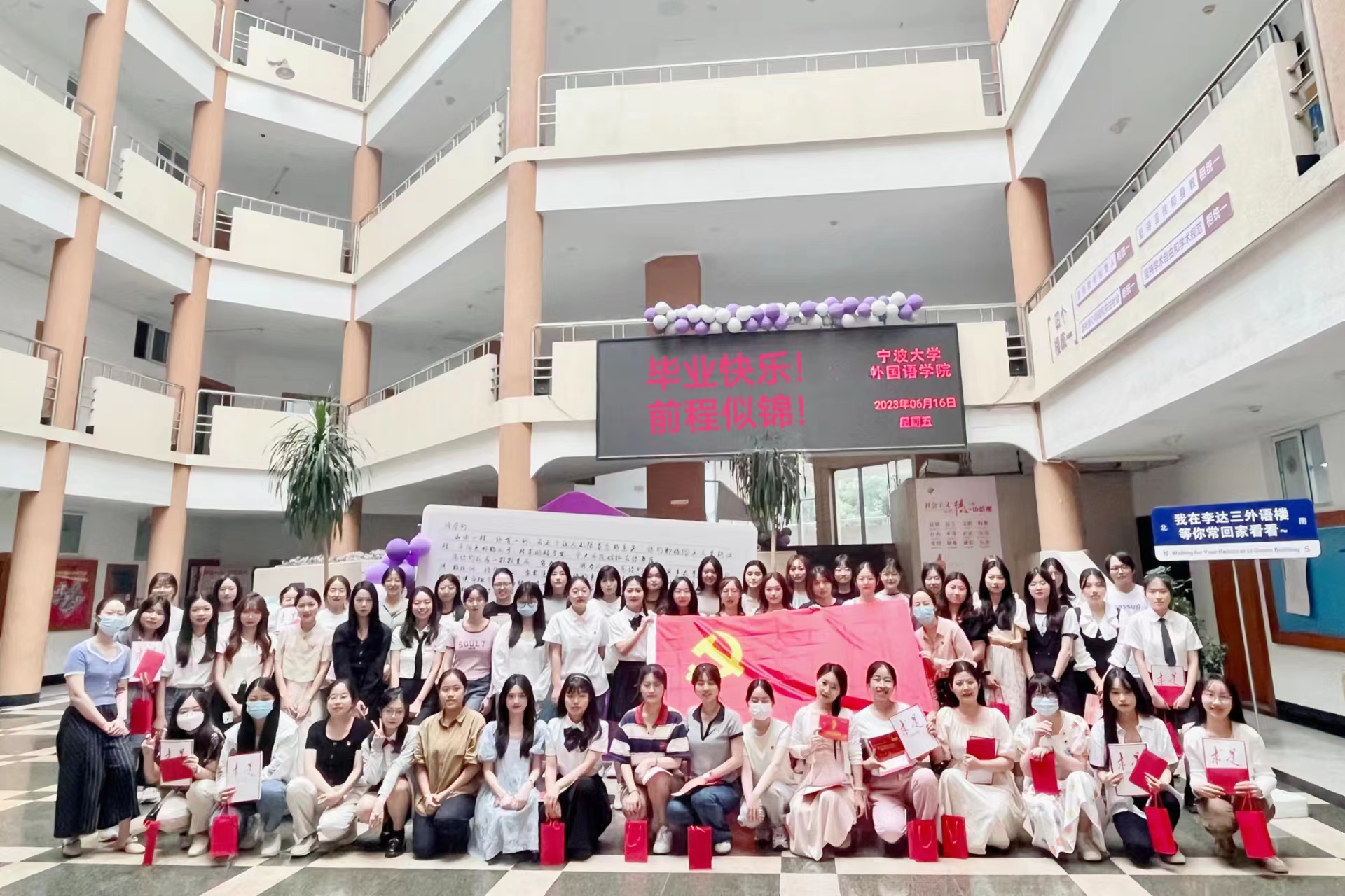 党委、并作为纪委书记提出了三点希望:一是希望大家无论未来身在何时何地,始终不忘入党初心,将铮铮誓言坚守到底,让党员身份闪耀在世界各地、五洲四海闪耀荣光。二是希望大家无论从事何种职业,始终不忘自己作为新时代外语人的使命和担当,做到眼里有世界、心中是家国,力争人人都能在自己的本职岗位上讲好中国故事、传播好中国声音、推广好中国的民族品牌。三是希望大家无论身居何位,职务是高是低,都能始终保持清醒、公心、廉洁、自律。她结合自己的亲身经历,指出腐败就在你我身边,要求大家常怀律己之心,牢牢守住廉洁底线和纪律规矩红线;牢记“小胜凭智,大胜靠德”,正确权衡利益,保持内心通透。