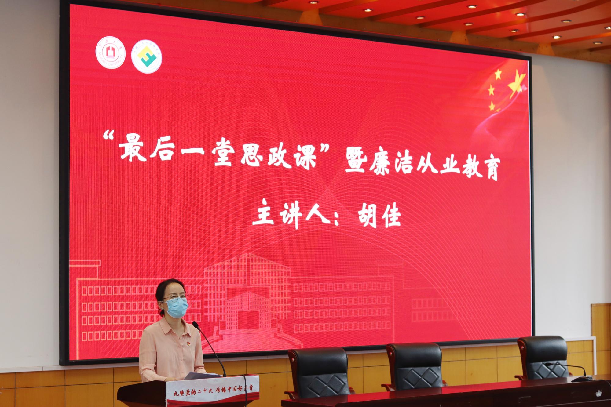 党委副书记兼纪委书记胡佳老师为毕业生党员上“最后一堂思政课”并进行廉洁从业教育。