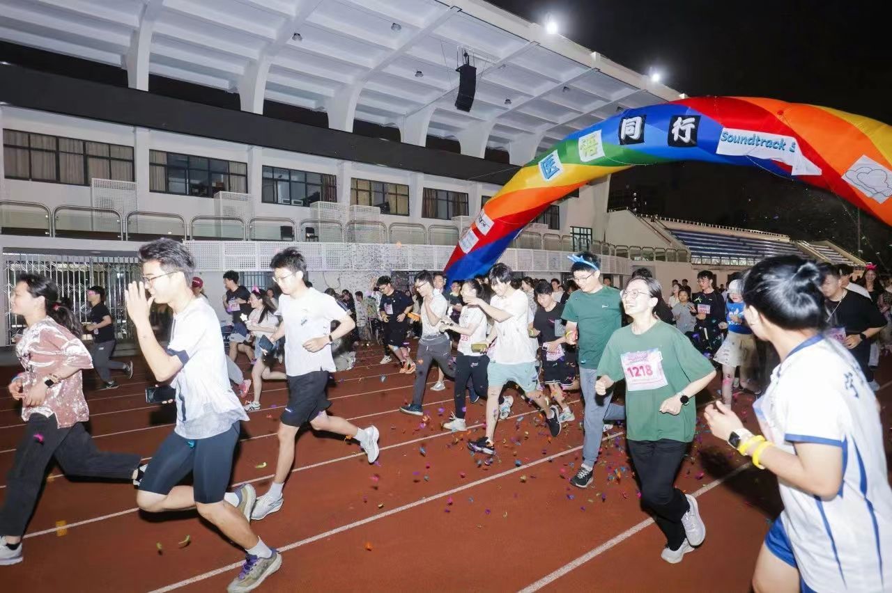 本部田径场上,一场别开生面的霉霉主题音乐夜跑在初夏的晚风中激情开跑。