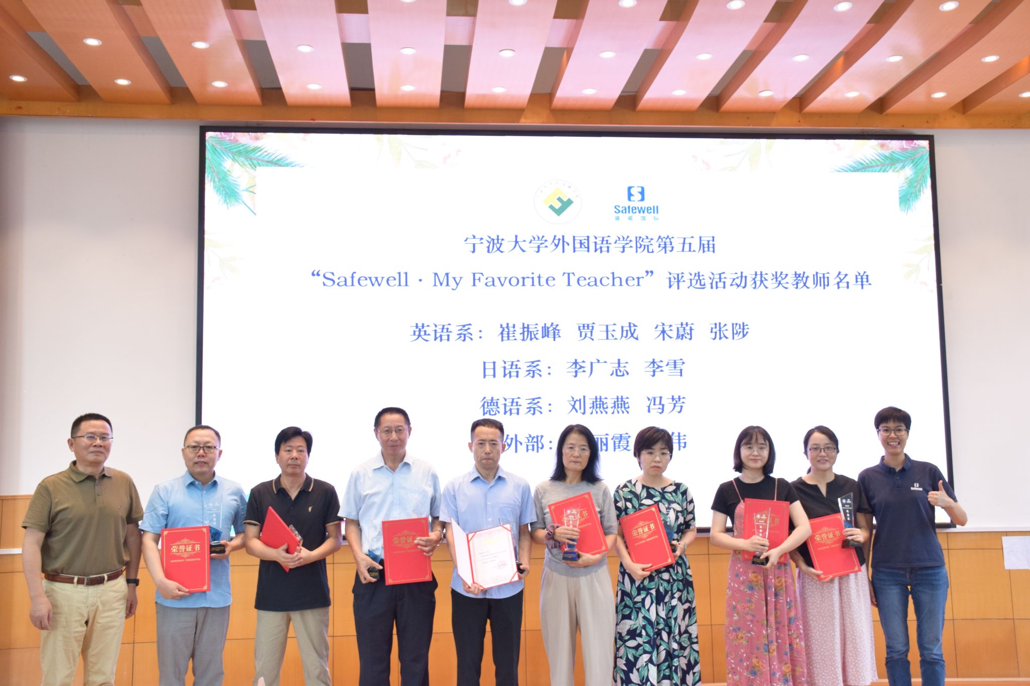 在全院教职工大会上举行了第五届“Safewell· My Favorite Teacher”评选活动颁奖仪式。德语系2011届校友、盛威卓越国际贸易有限公司总经理叶凌玲及其团队成员与黄色视频
